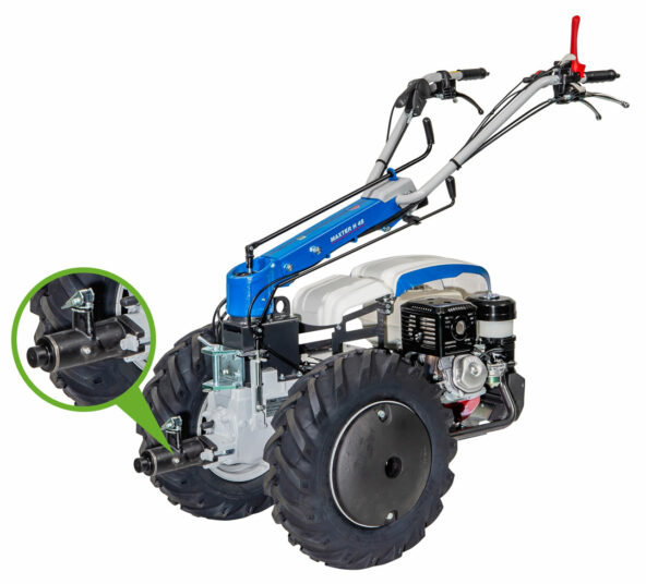Le blocage de différentiel permet aux roues de tourner à des vitesses différentes. Ainsi, en cas de perte de traction sur l’une des roues, le différentiel bloque afin que les roues continuent de tourner à la même vitesse. Cela évite le patinage de la roue la moins adhérente en ligne droite et permet un travail plus agréable. Tous les motoculteurs n’en sont pas forcément équipés, cette option apporte un réel confort de travail.