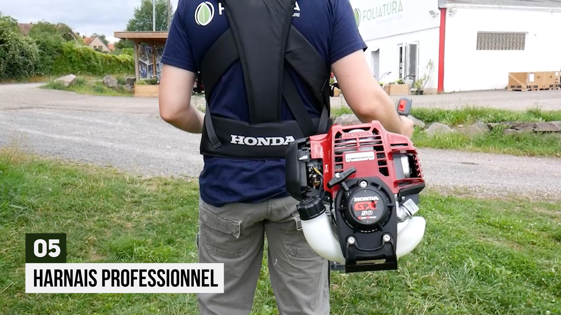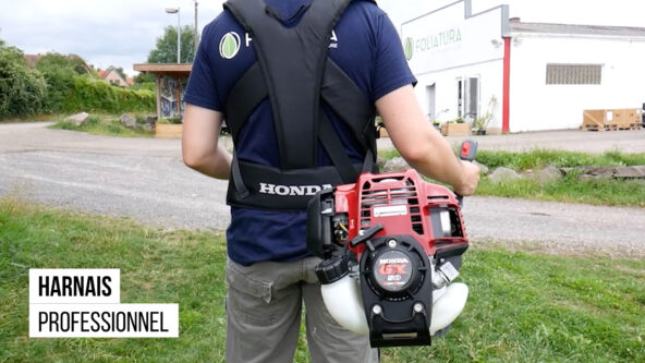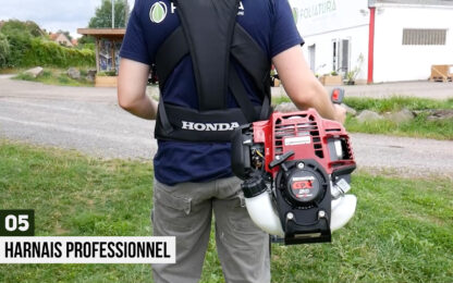 Avec son poids de 9 kg, qui est assez élevé pour une débroussailleuse, il est impératif d’utiliser un harnais pour manier la machine.