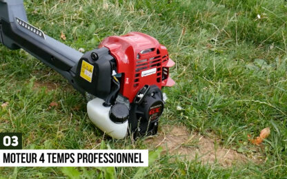 Mais alors, quel est l’intérêt d’avoir un moteur 4 temps ? Le moteur 4 temps sera certes moins puissant qu’un modèle 2 temps , mais on gagne sans aucun doute en confort lors d’une utilisation prolongée. En effet, le travail est plus agréable : les vibrations sont limitées et ils sont bien plus silencieux que les moteurs 2 temps. Et en plus, plus besoin de faire son mélange huile et essence ! Ils sont également 25% plus économes en carburant, ce qui n’est pas négligeable.